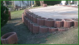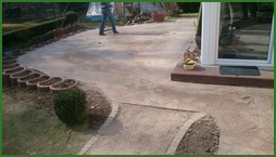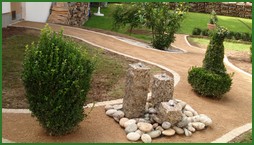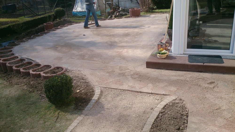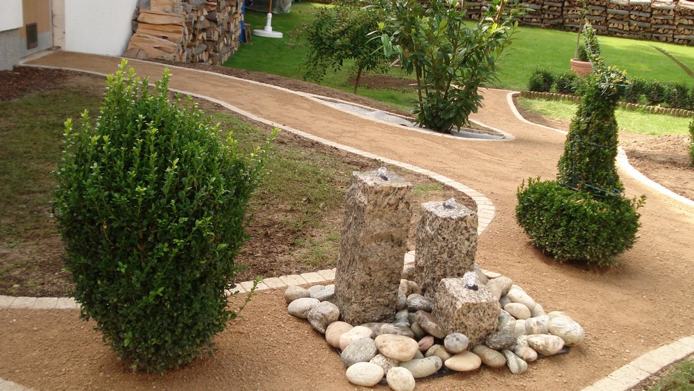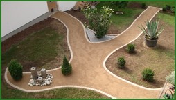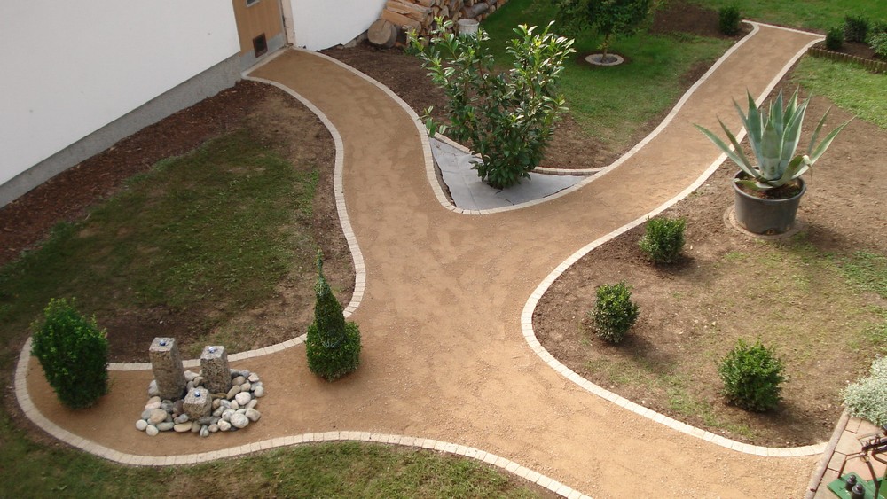 - wassergebundene Wegedecke mit Einfassung Betonpflaster in Beton versetzt